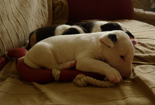 * Friday night I kept dreaming about bull terrier puppies charging around a big sitting room with cream coloured carpeting. Guess what happened to the cream coloured carpeting. Last night I simply didn’t sleep.