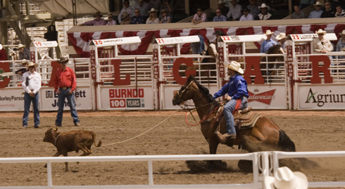 As soon as the parade had concluded, we walked the 15 blocks to the Stampede Arena to watch the rodeo. Bareback and saddle broncs, tie-down roping, bull riding, and ladies’ barrel racing – it was everything that I’d hoped for and expected, and so exciting to watch.
