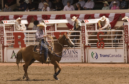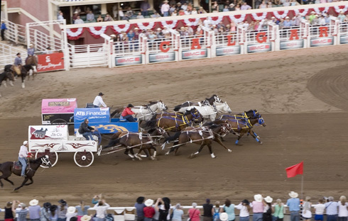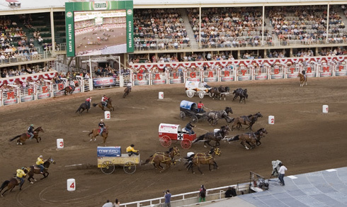 The rules of the chuckwagon races – involving the positioning of the wagons at the start, the route the wagons take around the markers, and the positioning of the outriders – did escape me, I’m afraid.
