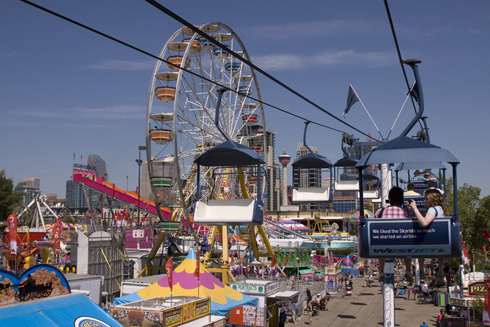 The evening show which followed the chuckwagon racing was brilliant. Song, dance, acrobatics and aerial performers worthy of the Cirque du Soleil (high praise from Paul and me, both CdS fans!), and a magnificent fireworks finale. At nearly midnight we walked out through the huge crowds still milling around the Stampede fairground and queuing for the music events, and back to our hotel. It was so warm that even at that hour, we were still wearing just t-shirts. A fantastic, if exhausting, two days.