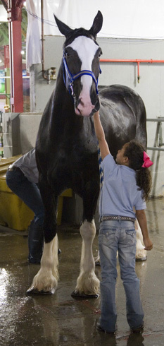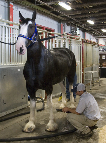 Not all the horses we saw were bucking broncos and thoroughbred racers. We meandered through part of the Agricultural section of the show, and into the horsey section, and came across some huge, glossy, heavy horses being primped and prepared for their show events.