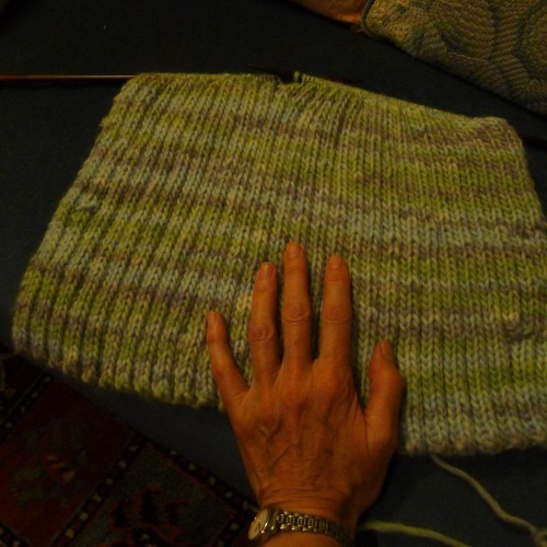 And I had SIX FEWER STITCHES THAN I STARTED OUT WITH. How does this HAPPEN?‡ I counted and recounted obsessively when I first cast on, and used stitch counters and everything to doublecheck. But I don’t see any way I can have LOST SIX STITCHES in what passes, in beginners’ terms, for a relatively even, regular block of knitting. WHERE ARE YOOOOOOOOOOU? So, since I was six stitches down anyway, I decided to let the extra two or four (this is 2 x 2 ribbing) live. Clearly I need their aid and support.