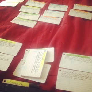 3)Accomplishment: There's a reason why I don't knit blankets or sweaters. It's not that I don't like them, I just don't like big projects like that. I get impatient and want to move on to the next thing. I actually get a little depressed if I don't have that sense of accomplishment that comes with finishing something every now and then. So, a big writing project like a novel or (gasp!) a series of novels can be a daunting task. Working from an outline helps me break that down to smaller more manageable tasks. I go act by act, scene by scene and check them off as I finish drafting each one. I even go so far as to print them out and put them into a notebook in the order of my outline right behind the relevant index card or cards for that scene. This way I can look at the manuscript and feel like I'm moving forward.