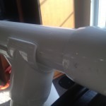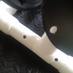 The diagonal cut on the flyer support: The orifice at the end of the flyer rests in a slot on the front piece of PVC which is cut at a diagonal. This is fine, but if you get a little too relaxed with where your hand is you can find your yarn rubbing up against this cut and it's sharp enough that if your yarn is thin it might actually cut some fibers. This can be fixed by sanding, but again should I have to be the one doing that?