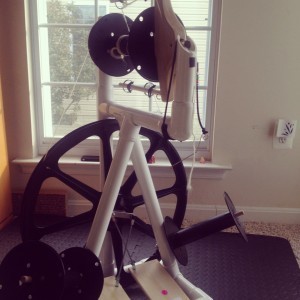 I have been drooling over her Ashford Country for months, but as pretty as those wheels are they only do thicker yarns and the cheapskate in me just rebels at the idea of paying hundreds of dollars for a wheel that only does one kind of yarn. The Babe Bulky Production Wheel is supposed to do everything from bulky to lace weight, and it still uses the enormous bobbins like the Ashford Country. So I called the place where we got the Jumbo Flyer and returned it for some store credit toward the Babe Bulky Production.