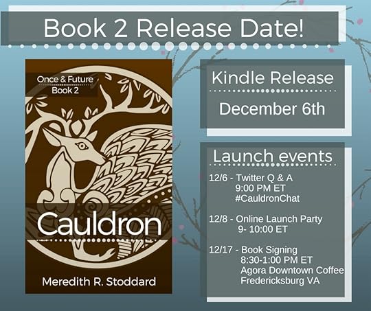 December 6th the ebook will be available for Kindle. It will only be available for Kindle to start with. I'll look into expanding the books to other ebook platforms after that first 90 days, but for right now it's Kindle only.December 6th Twitter Q&A - I'll be answering questions on Twitter regarding Cauldron on the 6th starting at 9PM Eastern time. If you aren't following me on Twitter, I'm @M_R_Stoddard. December 8th I will be having an Online Launch Party. I am currently planning this and testing platforms (YouTube, Facebook, Hangouts...) I will set up an event on my Facebook page and post here, as soon as I have the details. There will be readings from Cauldron, Q&A and giveaways.Print Launch I will be launching the print version of Cauldron with a signing at my favorite coffee shop, Agora Downtown Coffee Shop in Fredericksburg, VA. If you are anywhere near, Fredericksburg, please come and see us.I hope to see all of you at one or more of these events, and I can't wait for you to read Cauldron. I'm sure you're going to love it.