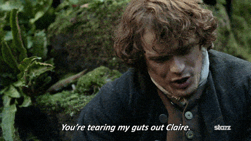 From the moment Jamie turns and sees Claire in the print shop, they have been a lit fuse working their way to an explosion. Each of them has spent the previous twenty years holding on to their heartbreak with white knuckled grips. Claire has been living with the spitting image of Black Jack Randall and raising a child while bottling up her grief over Jamie. And Jamie has spent twenty years surviving some extremely difficult circumstances while holding on to his grief as well. When they see each other again they’re not the same people that they were before Culloden.