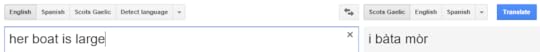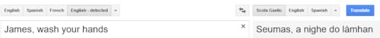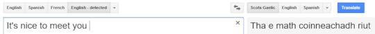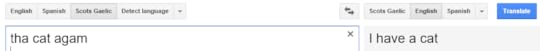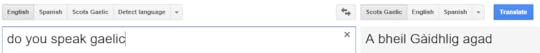 I should start by saying that it’s GREAT that Google Translate added Scots Gaelic to its list of languages. Seriously! At a time when Gaelic speakers/learners are fighting to save the language, or sometimes just convince people that it’s a living language and not a historical artifact it’s a big step forward to have Google deem it worth the programming needed to create something like this. And that’s A LOT of programming. Rosetta Stone hasn’t felt that it was worthwhile to offer their software in Gaelic, they even dropped their Welsh program years ago. So, should you add Google Translate to your list of Gaelic learning resources, use it to translate some key phrases for that great highland romance novel you’re writing, translate a favorite motto of yours for a Gaelic tattoo? Not so fast.