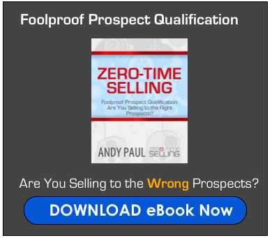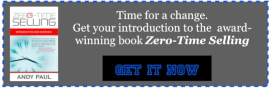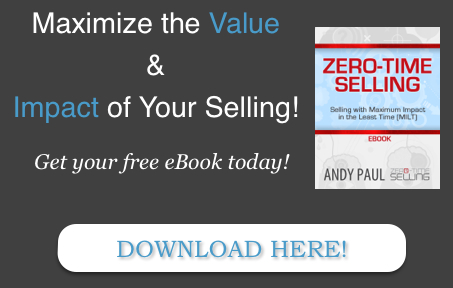 Andy Paul is author of the award-winning book, Zero-Time Selling: 10 Essential Steps to Accelerate Every Company’s Sales. A sought-after speaker and business coach, Andy conducts workshops and consults with sales teams of all sizes to teach them how to use responsiveness, speed and intelligent processes to increase sales. Enjoy what you just read? Sign up for our regular digest of valuable Zero-Time Selling sales tips and strategies, “Selling with Maximum Impact.”