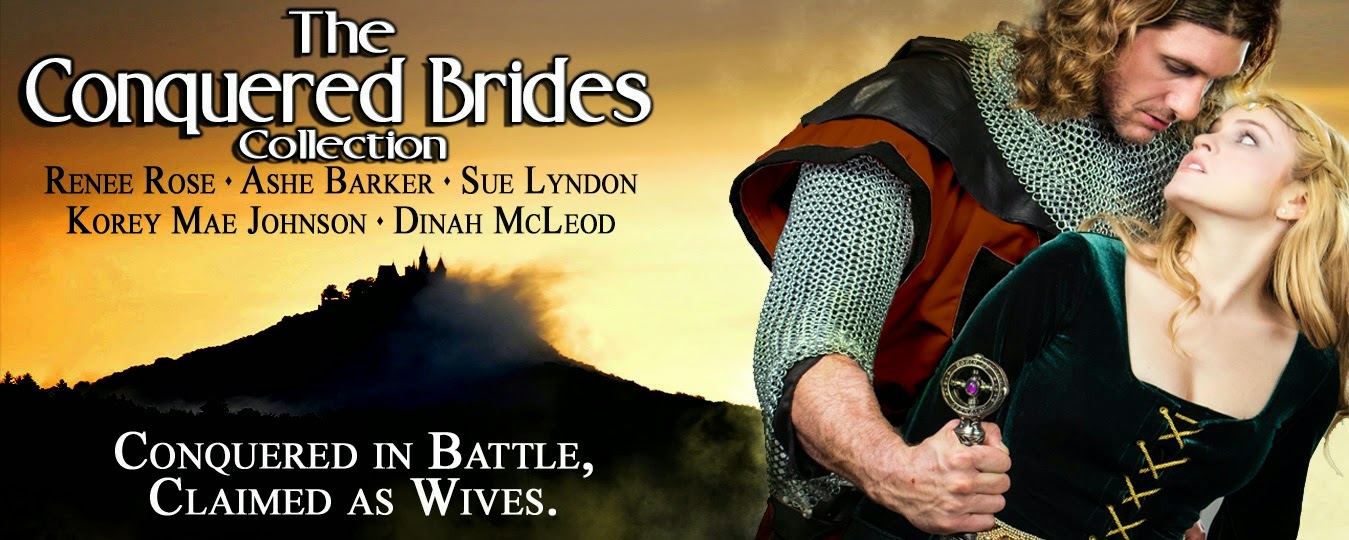 I'm very excited to announce the release of The Conquered Brides Collection , featuring five all new medieval spanking romance novellas by Korey Mae Johnson, Renee Rose, Ashe Barker, Dinah McLeod, and me! Each story in this collection follows the journey of a woman taken and claimed as a wife after the fall of Hohenzollern Castle. I had a wonderful time working on this project and I'm honored to be included among such a talented group of authors. I've read all the stories and I promise you are in for a medieval knight-sized treat...