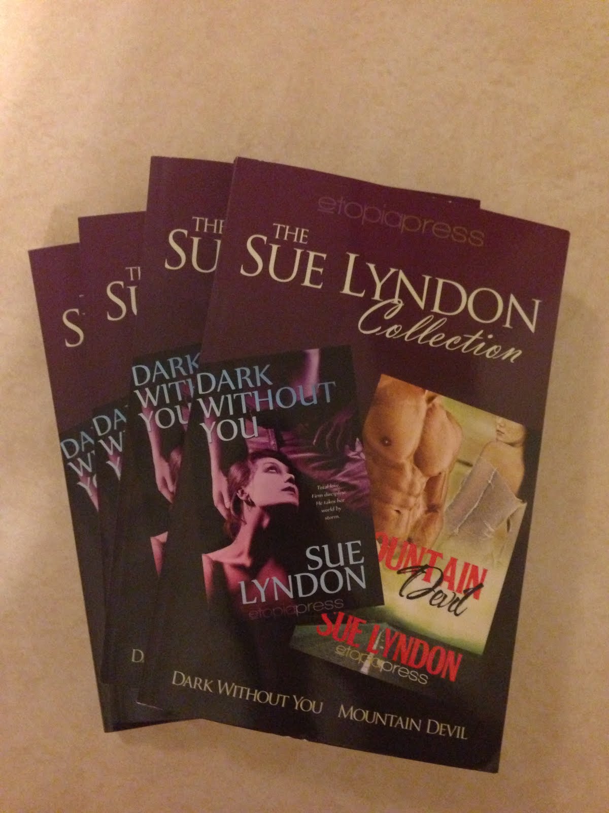 I'm so excited! My first print book was released last week with Etopia Press. It's called The Sue Lyndon Collection and it features Mountain Devil and Dark Without You. I received my author copies a few days ago and I can't stop stroking them and smelling them. LOL don't judge me.Mountain Devil blurb: