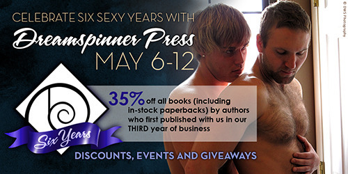 will probably fall somewhere in the middle; the boys meet at a bar and go home together for the sole purpose of a one night stand, but, well.... ;-) Most of the m/m books I read average...hmmm.... five, maybe six good sex scenes per 70,000-90,000 word book. Some are more explicit than others but that doesn't matter to me as long as they're well writting (the first time I see a "throbbing turgid member", I'm outa there! Oh, or "his cock wept", which is just as bad as "her cunt wept", which is pretty much why I don't read het! And yes, saddly, I've read books with weeping cocks and weeping cunts and all I think is would somebody please hand those poor little body parts a tissue...) And yet some books have absolutely no sex. A few years ago I read Downtime* by Tamara Allen (aka James Allen) and remember being struck by how chaste the romance was (although I don't count that as a bad thing!) So what are your thougts about sex in romance? How much is too much? How much is not enough? For me the "how much?" isn't what matters, what matters is what the sex scenes reveals about the characters. I will never quite forget the first few times (or the dead last time) I submitted work to my former critique group. Completely unused to books with on-page sex, several members were gobsmacked that "the story stopped for sex"--and yet when I tried to "tone down" that same book for my mother in law **, I couldn't. Too many important things happened between the sheets. Conversly, if the sex scenes can be cut out without changing the story, they probably should be. (I've found a new crit. group, but haven't attended a meeting yet. I admit it, I'm a little nervous.) And I do have to admit that I felt kind of vindicated when someone asked Elizabeth, Chief Executive in Charge of Everything DSP what kinds of manuscripts she doesn't accept and her third answer was "erotica" even though she said she sometimes gets some very good erotica sent to her. (Top answer: bad ones. Second answer: stuff we don't publish. Apparently there really are people who don't bother reading the submission guidelines or even pay much attention to the publisher's web page.) And speaking of DSP. I'm pretty sure my books will be in the last sale of the month (I was first pubbed with them in 2011), but this is an AWESOME opportunity to buy some amazing books from your other favorite DSP authors (you know I am!)