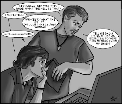 I've read in a couple of places that fanfic, especially slash and non-cannon meanderings, ruins the original. Let's try this on for size: it doesn't ruin it for the people who are reading and writing thost fanfiction. (Can we have another "duh"?) If fanfiction ruins the original story for you, don't read it; some of the decisions made in cannon have ruined television shows for me--which is why I turned to fanfiction in the first place...