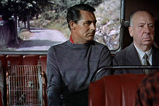 In the Grant films the problem disappears—perhaps not so much with Notorious, which, as he told Peter Bogdanovich, "Hitch threw to Ingrid." But in To Catch a Thief and North by Northwest we’re in the world of Cary Grant comedies and buoyed by the Grant charm, which never requires excessive dialogue.