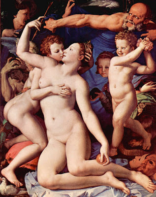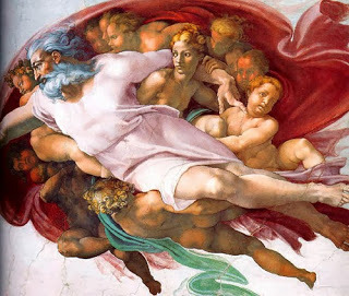 We've been surrounded by puritan imagery for two hundred years, Wordsworth's God brooding in solitude over the abyss. Homer's gods "dwell in bliss," and though that sterilizer Plato hates the idea, heaven may well be an orgy. Look at the company Michelangelo's God keeps: