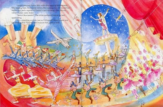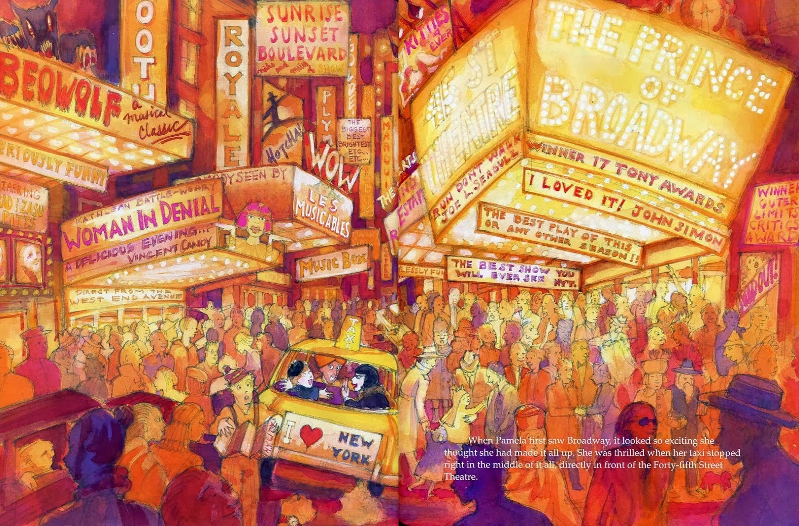 LIKE AUNT LOUISE, Wendy Wasserstein knew everybody. The back cover of Pamela's First Musical is blurbed by Meryl Streep, Angela Lansbury, Kevin Kline, Glen Close, Cy Coleman, Chita Rivera, Carol Channing, Sarah Jessica Parker, Matthew Broderick, Gregory Hines, Bernadette Peters and others. But despite knowing theater, and knowing everybody, Wasserstein found she didn't know children's books. In an essay for The New York Times about the book tour for Pamela's First Musical, she wrote, "When I look back on my first foray into children's literature, it seems an act of complete naivete and hubris at once." First, she is surprised how similar the children's book business is to theater "in all its ambition, difficulty and quirkiness":"The boffo book chains of the Barnes & Noble and Borders variety appear to be the Broadway of children's books departments, complete with sets, lights and sizable audiences. There are even over-the-title stars like "Eloise," "Madeline," "Clifford"; and of course the proven box-office talents of Maurice Sendak, Faith Ringgold and Lane Smith."As she continues to tour she learns that "touring with a children's book required acting, teaching and stand-up skills beyond my playwright's training." It didn't help that, out of town, when she asked audiences of children if they had seen any musicals, only about a quarter of them had if she was lucky. It wasn't until she was back in New York, where "even the boys like musicals [and] the stars of "Pamela's First Musical," Nathan Hines Klines and Mary Ethel Bernadette, are immediately recognizable," that she felt comfortable with the crowd.