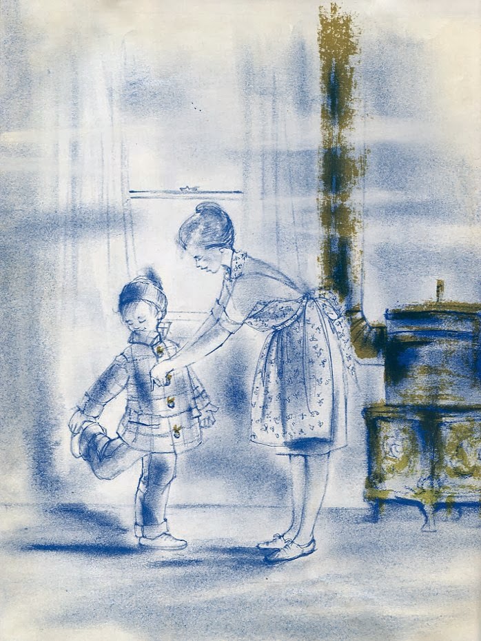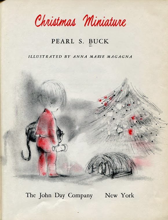 SHORTLY BEFORE CHRISTMAS, I wrote about several of Pearl S. Buck's Christmas stories for children. At the time, I was still waiting to get my hands on some other editions of the stories, and promised I would post scans as soon as I did. Well the books came in...Christmas Miniature and The Christmas Ghost were both published as books by The John Day Company with illustrations by Anna Marie Magagna almost immediately after the stories appeared in Family Circle Magazine. Magagna was at the start of an illustration career that would go on to include editions of The Wizard of Oz, Little Men and Little Women, Five Little Peppers and many others. Her drawings for Christmas Miniature were shown at the National Gallery of Art in Washington D.C. in 1958.