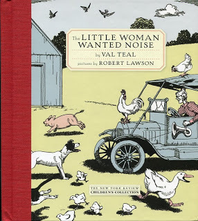 ALMOST EXACTLY ONE YEAR AGO, I contributed a guest post to Vintage Kids' Books My Kid Loves on the book The Little Woman Wanted Noise by Val Teal with pictures by Robert Lawson. The people over at New York Review Books, who bring wonderful out-of-print books back into print, saw the post and loved what they saw, so they tracked down a copy for themselves. Then they got in touch with me and asked if I had any way of getting in touch with Val Teal's family. At the time, I didn't, but thanks to some internet sleuthing, I managed to actually get in touch with Val Teal's daughter, and to put her in touch with NYRB, and so now, today, a brand new, back-in-print copy of The Little Woman Wanted Noise arrived in the mail. Which means that all of you readers who have spent the last year pining after the book in my post (and those of you who haven't) can buy a new copy now! Well, in a few weeks, when the book is officially released on September 24, 2013. So pre-order! And enjoy.All images are copyrighted © and owned by their respective holders.