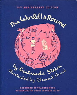 LONG TIME READERS might remember a series I did almost two and a half years ago on Gertrude Stein's children's book The World Is Round. There have been many editions over the years, in many different formats, with different illustrations, all of which I examined then, all of which were out of print. But now thanks to Harper Design, The World is Round is back in print in a 75th Anniversary Edition that features the original illustrations, complete with pink paper and blue text, on nice, heavy paper stock. Illustrator Clement Hurd's son Thatcher Hurd, who is also a children's book writer and illustrator, provides a new foreword detailing the publication history of the book along with reminiscences of his father at work. But more importantly, Edith Thatcher Hurd's afterword, which originally appeared in a limited collector's edition in 1986 is included, containing correspondence between Hurd and Stein during the creation of the book. The only thing I would have liked to see in addition are samples of Hurd's redrawn illustrations for the 1966 edition, but that criticism is extremely nitpicky. In DVD terms, this is really the Special Edition with Bonus Features, and I highly recommend it to anyone interested in Stein's children's book.All images are copyrighted © and owned by their respective holders.