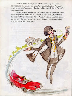 AUNT LOUISE MIGHT just as well be called Auntie Mame. She is a clothing designer who goes around saying "Ooooooo, dahling." "(You can tell whether Aunt Louise designed your blue jeans because they are all signed Oooooooh, Dahling on the back pocket.)" While "all of Pamela's friends at school knew grown-ups who went into the city every day to work...Pamela's aunt Louise actually lived there." She also seems to know everybody who is anybody.After a stop back at her apartment to change "out of her driving clothes into her theater clothes," Aunt Louise drags Pamela to the Russian Tea Room. "'The Tea Room is simply the place to have lunch before your first musical.'"