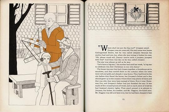 Buck's own gardener "always insisted that the ghost of Old Devil Harry did walk every Christmas Eve at midnight from the big red barn to the bridge, to meet the ghost of a former crony with whom he used to get drunk each Christmas Even." In the story, Mr. Higgins and Timothy Stillwagon meet to admire each other's Christmas trees. Like "Christmas Miniature," "The Christmas Ghost" appeared as a book almost immediately with illustrations by Anna Marie Magagna. The story was included in Once Upon a Christmas as well.