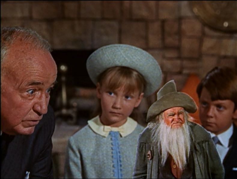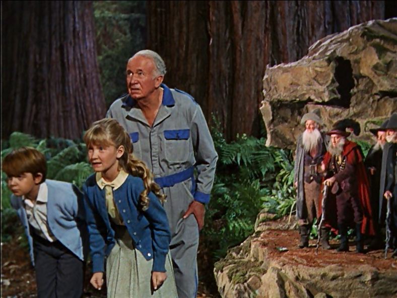 The movie at this point, reaches new levels of silly. Knobby has found another colony of gnomes nearby. The Gnome-Mobile crew manages to pull off the road and find him immediately. He's in the company of Rufus, leader of the colony, played by the lord of silliness Ed Wynn in his final performance.Rufus introduces some of the other gnomes, but they are all men, which leaves Jasper a bit disappointed. When D. J. points this out, Knobby says, "Of course, how stupid of me. Rufus has more girl gnomes here than he knows what to do with."