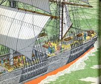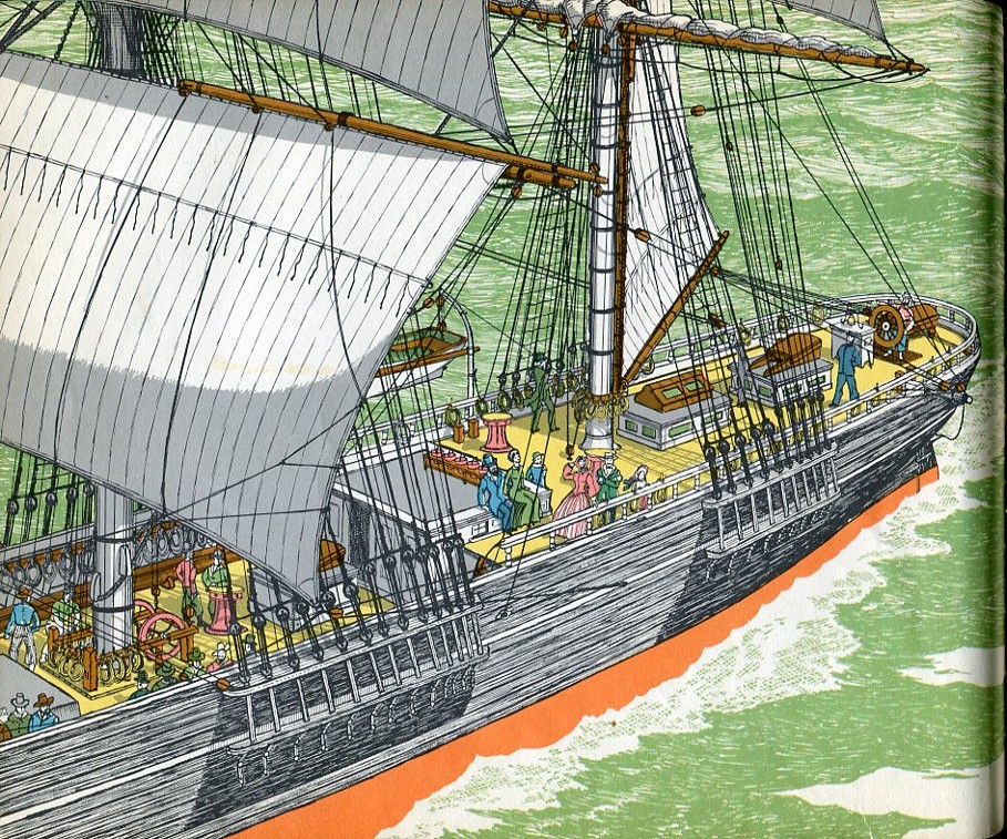 From Clipper Ship (1963) by John O'Hara Cosgrave IIOne other thing that comes out in the various sources, but most obviously in the work he actually did was Cosgrave's love of boats and boating. For awhile, it seems, Cosgrave was one of the go to artists for boats and other maritime subjects. He authored several books on the subject as well.