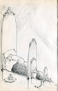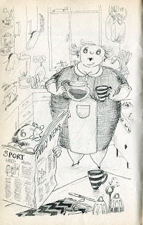 The book is included in 2001's Collected Children's Stories with illustrations by David Roberts, the black and white illustrations in this post.