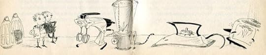 MRS. CHERRY IS A DOMESTIC GODDESS, who has a great appreciation for her modern appliances. She says things like, "'Thanks to our fine, shiny toaster...It's made us golden-bown toast each day without fail all these years.'" These kind of statements make her appliances proud, but it turns out it's not enough to keep them content. Each wants to do a job that another appliance does.