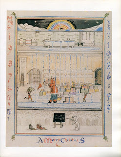 But what did Father Christmas write about? Well his boon companion was the North Polar Bear, who had a way of getting himself into trouble. In 1925, he climbed the North Pole to retrieve Father Christmas's hood, and the North Pole broke, destroying Father Christmas's house in the process. In 1928 he fell down the stairs and in 1936 he fell asleep in the bath, flooding one of the gift sorting rooms.
