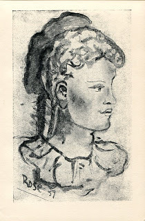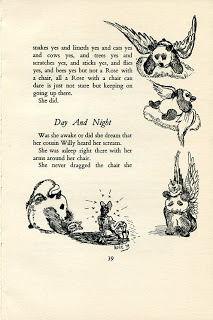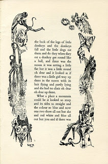 , her first choice for illustrator was one of her protégés, the painter Sir Francis Rose. Her editors, William Scott and John McCullough, however were opposed. They felt Rose's art would not appeal to children. As McCullough wrote in a letter to Stein, the "rather studied decadence and sophistication, though possessing qualities of its own strikes me as neither appealing to children nor particularly appropriate to the imaginative vitality of your writing." Stein in a letter to her good friend Carl Van Vechten said, "the editor William R. Scott 224 West Eleventh Street and the editor of [The World Is Round] John McCullough have found an illustrator, I had suggested Francis Rose but they seemed to want an American, they sent me some of the illustrations by Clement Hurd, they seem sweet but very undistinguished..." Hurd became the illustrator, and ended up doing three iterations in his lifetime, as I have written about in my original post (link above).In 1965, Haskell House, "Publishers of Scholarly Books," at last released an edition with Sir Francis Rose's illustrations. The first is a halftone reproduction of what looks to be a watercolor sketch labeled "Rose" and dated 1939, the year the first edition of The World Is Round appeared.