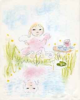 "Then he came to tea?The next person I meets is another little girl named You. "'You. That's who I am' she said 'And You is my name because I'm You.'" They sit down to tea and jam and bread together. "And that's the end of this story."
