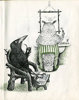 Then "The Little Girl Named I." I is Nancy, searching for a companion. She finds the elephant, Cummings, and invites him to tea. But in this story he says, "no." He no longer will be there for her, and in the end the only playmate she finds is herself. It is a sad story, but it reflects how Cummings handled the loss of his daughter, how he was forced to shut her out of his heart so the pain of her loss could not affect him. But it is also a parent saying to his child that at some point you must go out on your own.