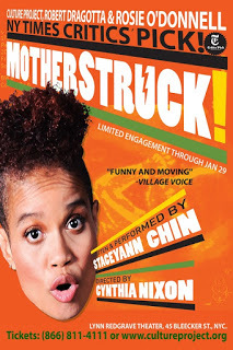 Directed by Emmy, Tony, and Grammy Award winner Cynthia Nixon (Sex and the City) and produced by Rosie O'Donnell, Robert Dragotta and Culture Project, MotherStruck! sets forth Staceyann Chin’s (Russell Simmons' Def Poetry Jam on Broadway) personal journey to motherhood as a single woman, lesbian and activist who does not have health insurance or a “serious, stable financial set up,” but wants to have a child. Told through Chin’s uniquely personal and poetic lens, this solo show explores how the process changed her life and how she makes peace with what she learns from this profound experience. Ultimately, MotherStruck! is about family -- who is family and what makes a family. That being said, you will not want to miss this critically-acclaimed performance.