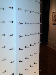 Virginiga Melnyk's fabulous tetrahedral sculptures in some of the open spaces of the hotel. They use reflective fabrics and nest along the ceilings.