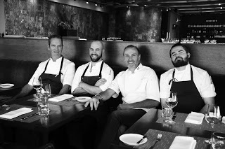 Since opening in September 1995, Canoe has been recognized among Canada’s top restaurants. Its unique location high atop the TD Bank Tower affords a breathtaking view of downtown Toronto. Originally designed by award-winning design firm Yabu Pushelberg, the restaurant’s space is clean and simple - a brilliant reflection of Canada’s rich, raw environment. That same brilliance is captured through the flavours and textures of Canoe’s inspired Canadian menu, crafted by executive chef John Horne and chef de cuisine Coulson Armstrong. The menu showcases the freshest and finest Canadian fish, game and produce, as well as an outstanding selection of Canadian vintages. Canoe has received numerous awards and distinctions, including a #1 ranking by the Zagat Survey and Toronto Life magazine, as well as a four-star rating by The Globe and Mail (2015). From left: Anthony Walsh, John Horne, Michael Bonacini, and Coulson Armstrong. Image by Allison Woo.