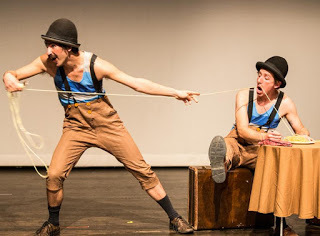 The Incredible Incredible presents Palindrome, the story of two characters, each the other's imaginary friend, meeting for the first time to unfold the intricacies of their tangled coexistence. Featuring invisible string manipulation, shoe poi, impossible feats with silverware, sinus explorations, snail hats, and finger stunts all set to live music! The Incredible Incredible is a physical theatre duo formed by two friends inspired by mime, physical comedy, traditional American sideshow, European clowns, and street theatre. Matthew "Poki" McCorkle is a self-taught physical performer known internationally for his surreal hoop illusions, movement based manipulation, and unique and unusual presentations. Justin Therrien is an entertainer that challenges the audience's perception of what is real and what is illusion with his unique blend of movement and skill based manipulation. Accompanying them is composer and multi-instrumentalist Lucas Hicks on accordion, percussion, harmonica and ukulele.