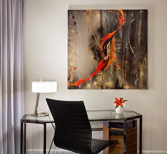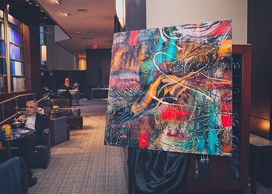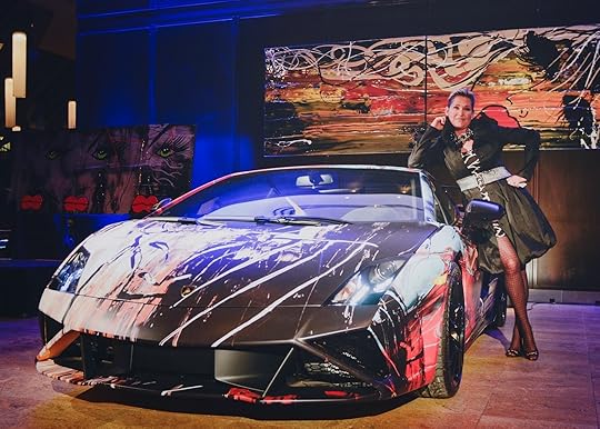 Lisabel's bold abstract works greet you from the lobby along with - for a limited time - the Lamborghini Art Car that's gotten her eye popping and colourful makeover.