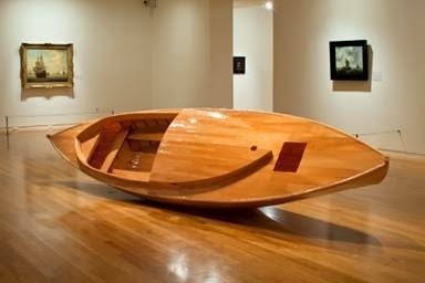 Rozinante (2013): A half-scale sailboat meticulously constructed as a hollow shell of paper-thin fir wood veneer and resin.