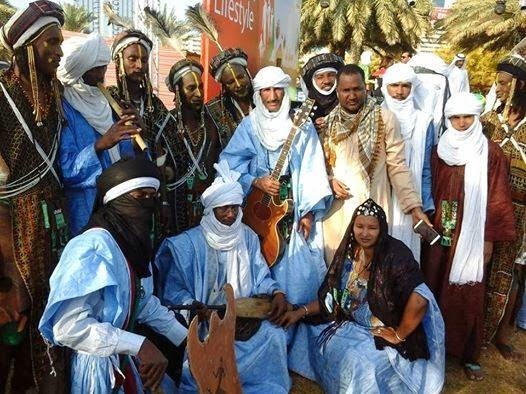 annually on the stage of the Festival au Desert and have performed in Europe and the North America. The group’s name "Imarhan" means "those who love" in Tamashek, the Tuareg language. By adding “Timbuktu”, they demonstrate their strong pride in their legendary home town. The core members of IMARHAN TIMBUKTU are Mohamed Issa, his brother, guitarist Ousmane Ag Oumar El Ansari, and their two sisters, percussionists and backup vocalists Fadimata Walet Oumar [known to all as “Disco”] and Zeina Walet.