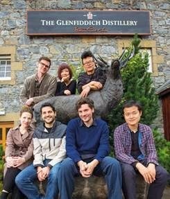 Image - Seven of the eight 2013 Glenfiddich Artists in Residence Prize recipients at the Glenfiddich Distillery in Dufftown, Scotland. Left to right: Daniel Barrow, Canada; Agi Chen, Taiwan; Jungho Oak, Korea; Marie Von Heyl, United Kingdom; Erick Meyenburg, Mexico; Jonathon Ehrenberg, USA; Zhang Yunyao, China. Yuvan Bothysathuvar, India, not pictured