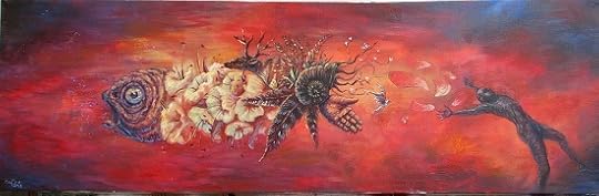 Cesar's paintings inhabit a surreal world where fantasy and reality mix, lit up by a rich sense of colour and depth. People and natural subjects are both examined, with an overarching theme of linking human nature to its environment, often through social and political themes. Street life in Mexico City is a frequent subject of his work.