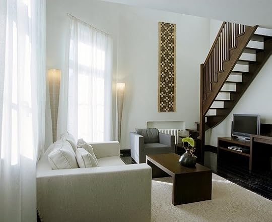 Hotel Bergs, Riga - suiteArt Nouveau design combines black-and-white colour tones with leather furniture and oak floors, while paintings by Latvian old masters merge with African traditional textiles and woodcarvings. Paintings by Ilmârs Blumbergs adorn the guest room walls and he also created the striking fountain in the courtyard.
