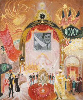 The Cathedrals of Broadway by Florine Stettheimer, 1929, oil on canvas, 60.1 x 50.1 in. (152.7 x 127.3 cm), Metropolitan Museum of Art. In the center, New York City mayor Jimmy Walker throwing the first pitch of the baseball season.