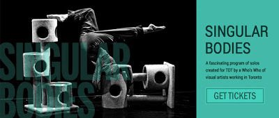 Singular BodiesTen solos created for TDT by some of the most dynamic visual artists in TorontoApril 14-16 & 20-23, 8:00 p.m. | April 17, 2:00 p.m. (PWYC)Tickets $20-$26Winchester Street Theatre, 80 Winchester StreetFor tickets visit http://singular-bodies.eventbrite.caor call 416.967.1365 | www.tdt.org