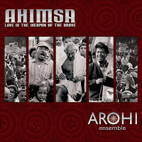 Arohi EnsembleArohi means ‘ascending melody’ and Ahimsa is the Sanskrit word for ‘nonviolence’. The release is dedicated to the courageous form of conflict resolution which faces a violent aggressor with nothing but soul force. The music journeys from meditative ragas to dynamic polyrhythms and improvisations expressed in the free spirit of jazz; move through this music with us in the spirit of ahimsa.
