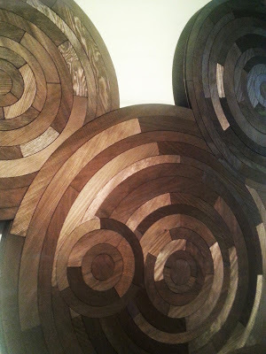 Djuna Day's stunning wall assemblage, Everything Seems Alright #10. Djuna doubles as a furniture maker and told me about the peculiarities of douglas fir, which absorbs more silica than other types of wood. It results in the shimmery texture that changes with the grain of each piece, a property Djuna exploits in the beautifully crafted piece.