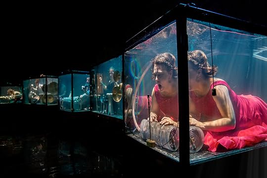 Instead of using SCUBA equipment, members must frequently resurface to breathe. The performers and their equipment start submerged in water-filled tanks equipped with hydrophones. Hydrophones are specially-built microphones that are used to pick up the band’s haunting concertos even while underwater.