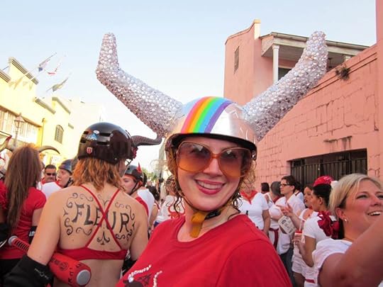 Rather than risk being gored by angry bulls bent on destruction in the streets of Pamplona, Spain, participants of the N’awlins event get chased by a fleet of roller derby girls wearing horns and wielding giant plastic bats.