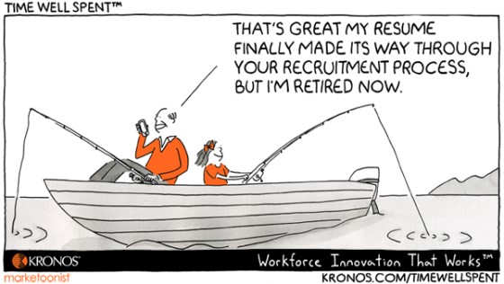 This Time Well Spent cartoon from our friends at Kronos reminds me that we need to balance our recruitment efforts like a three-legged stool. We want quality candidates, in a timely fashion, within a reasonable cost. It’s the concept of good, fast, or cheap.